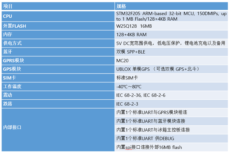 設備周期上報溫度、濕度、電量,以及各種工作狀態(tài)的數(shù)據(jù),IOT核心板接收以后進行數(shù)據(jù)分析,并上報數(shù)據(jù)和當前GPS信息,用戶可以隨時查看,若發(fā)現(xiàn)冰箱狀態(tài)異常系統(tǒng)將即時上報。
